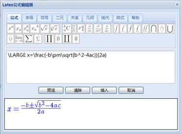 将latex公式编辑引入试题编辑器网页是本产品的一大创新,解决了网页输入公式的难题。